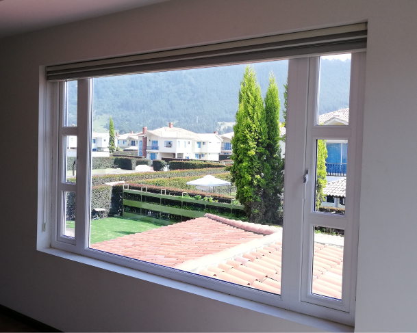 Vidrio: Cámara 25mm Composición (4mm Crudo Azul+PVB 0.38mm+3mm Crudo Inc./Separador 12mm/3mm Crudo Inc.+PVC 0.38mm+3mm Crudo Inc.)